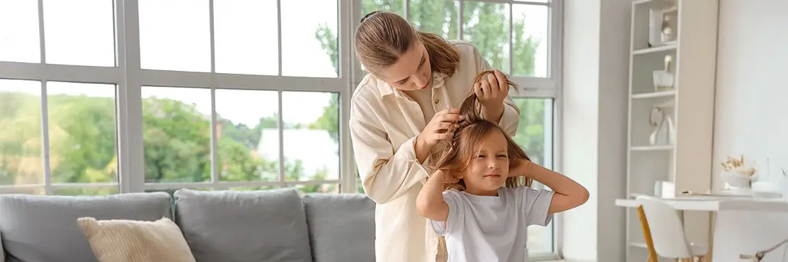 - Związywać włosy dziewczynkom – warkocz czy kucyk zmniejszają ryzyko kontaktu włosów.